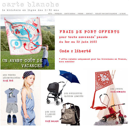 Frais de port offerts sur Carte Blanche Du 1 au 12 juin 2011 Oups, la vente est terminée ! Pour ne rien louper de nos bons plans : inscrivez-vous à la newsletter → Newsletter Actualités, ventes privées, nouvelles tendances : inscrivez-vous à la newsletter pour recevoir toutes les infos en avant-première ! × E-mail En continuant, vous acceptez la politique de confidentialité