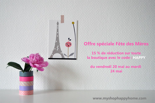 Du 20 au 24 mai profitez de 15% de réduction sur toute la boutique avec le code HAPPY