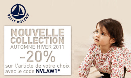 Découvrez la nouvelle collection automne-hiver 2011 PETIT BATEAU et bénéficiez de 20% sur réduction sur votre article préféré avec le code NVLAW1.
