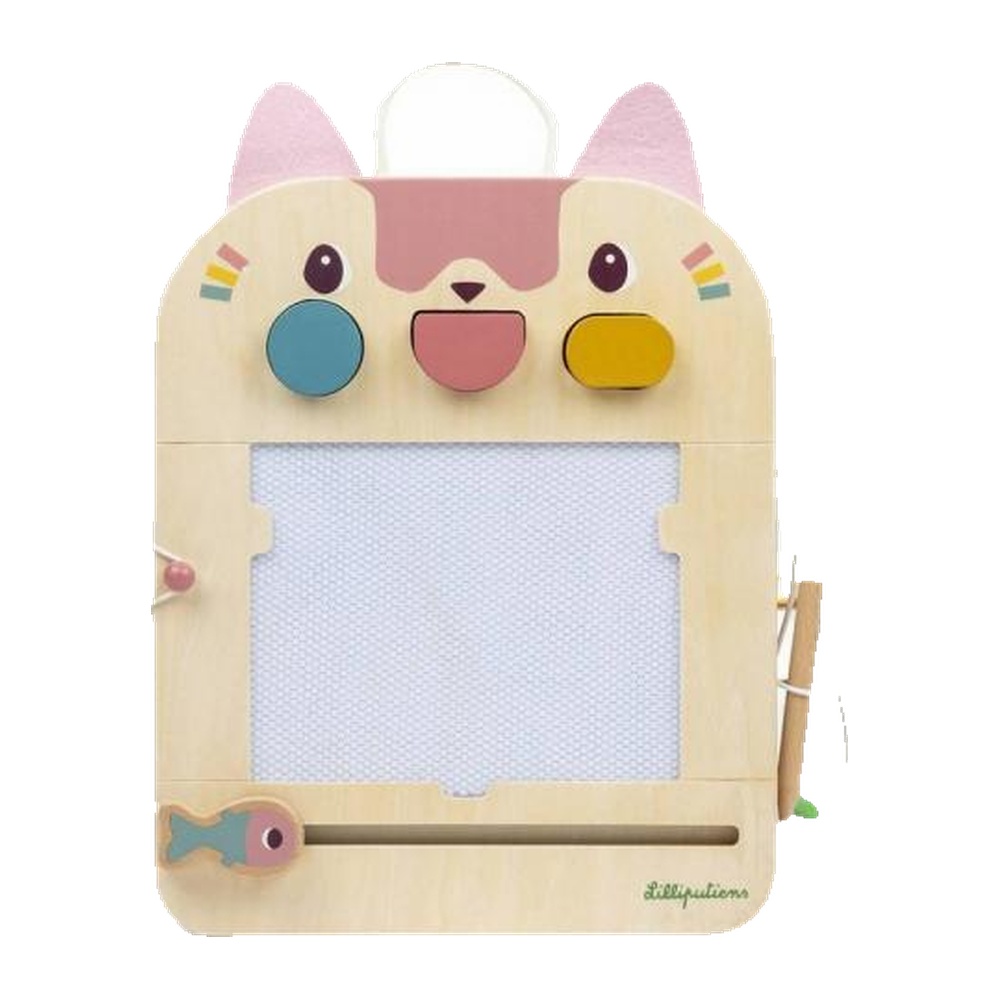 Avec leur ardoise en bois Jeanne le chat, les enfants dessinent et profitent d'une foule de petits jeux.