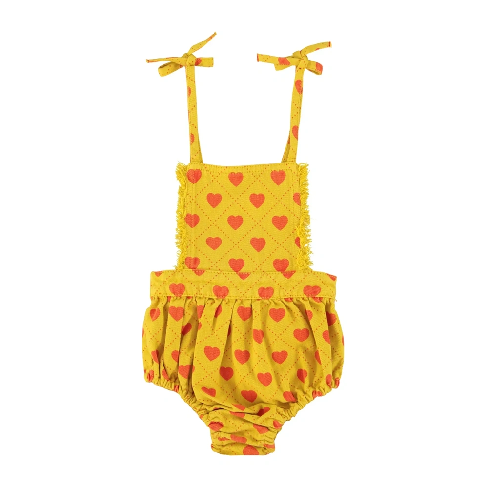 Dotée de fines bretelles à nouer, d’une taille et de cuisses élastiquées, elle s’adapte parfaitement aux mouvements de bébé.
