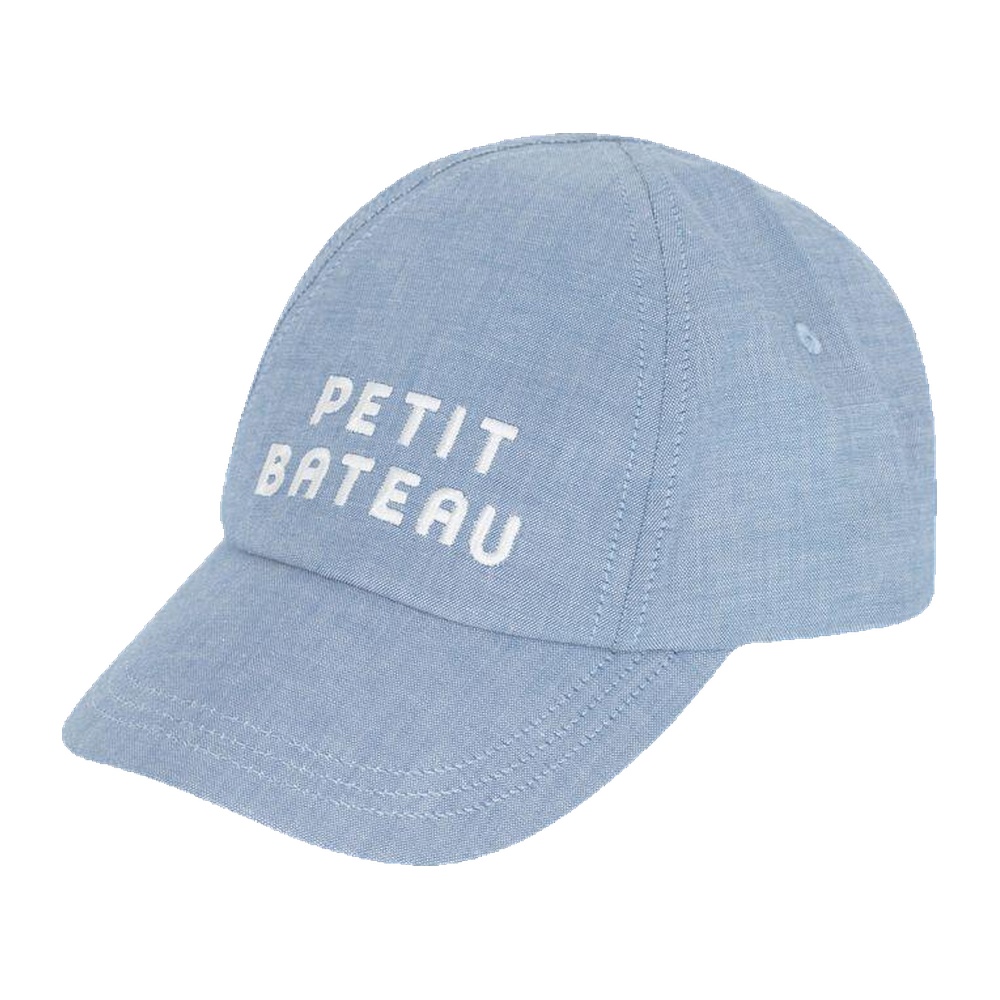 Casquette en denim clair, idéale pour protéger la tête des tout-petits avec style.