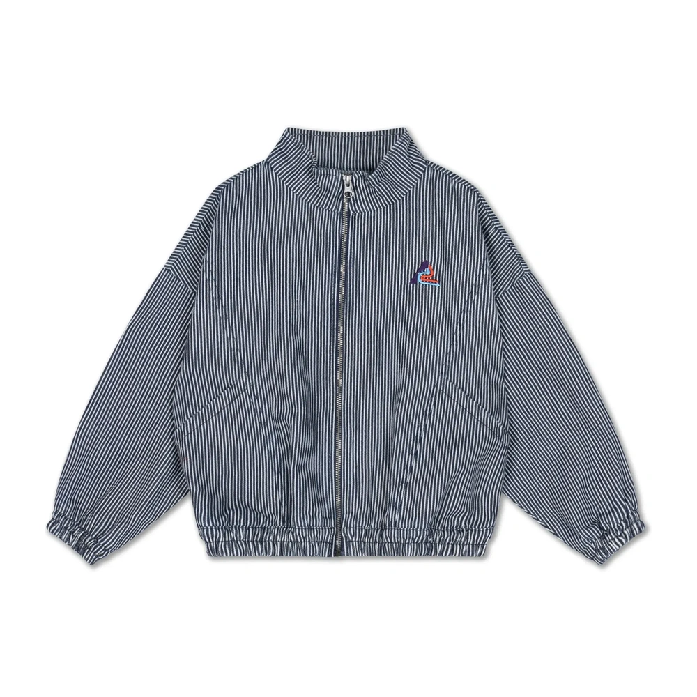 Ce coupe-vent rayé revisite l’esprit rétro des années 80 avec modernité.