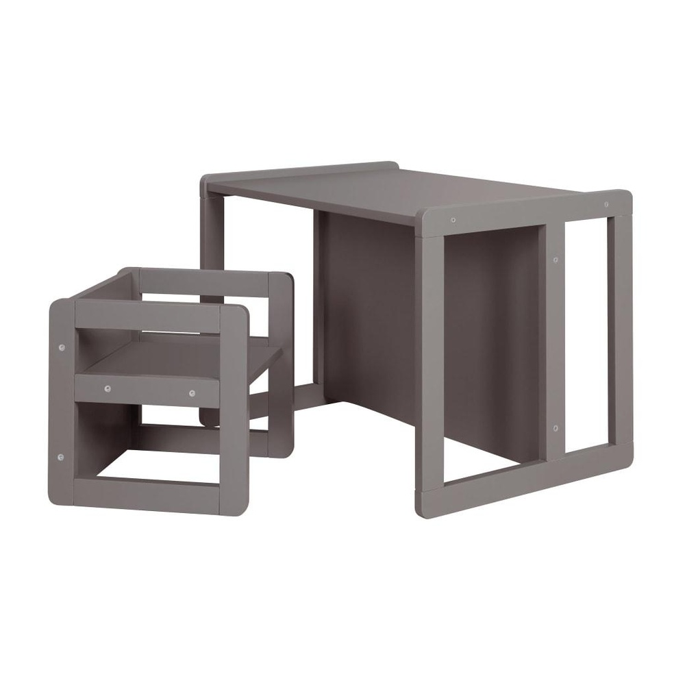 Cet ensemble modulable se compose d’une table convertible en banc et d’une chaise réversible, conçues pour s’adapter aux différents moments de la journée. Les hauteurs d’assise réglables permettent de suivre la croissance de l’enfant, tout en offrant une manipulation facile et sécurisée.