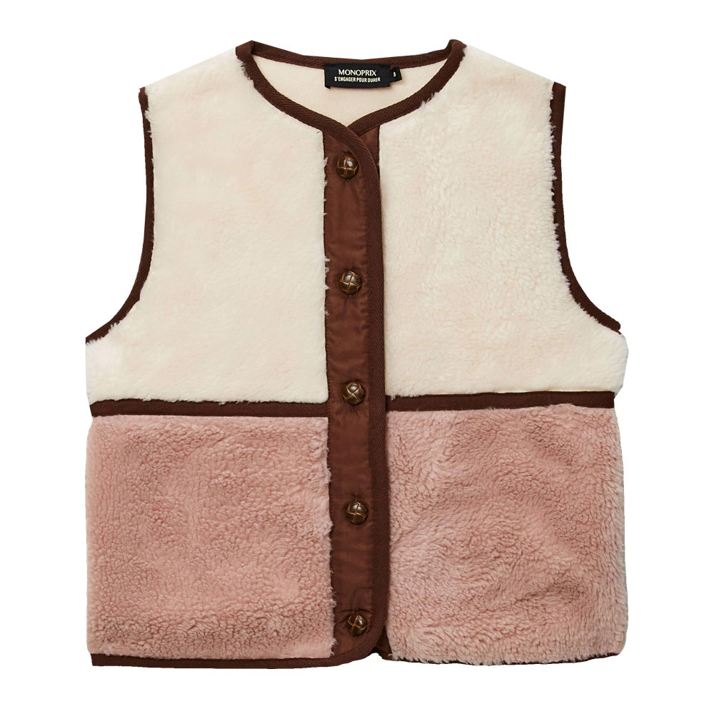 Ce gilet sans manches en sherpa colorblock enveloppe l’enfant de douceur grâce à son intérieur en polaire.