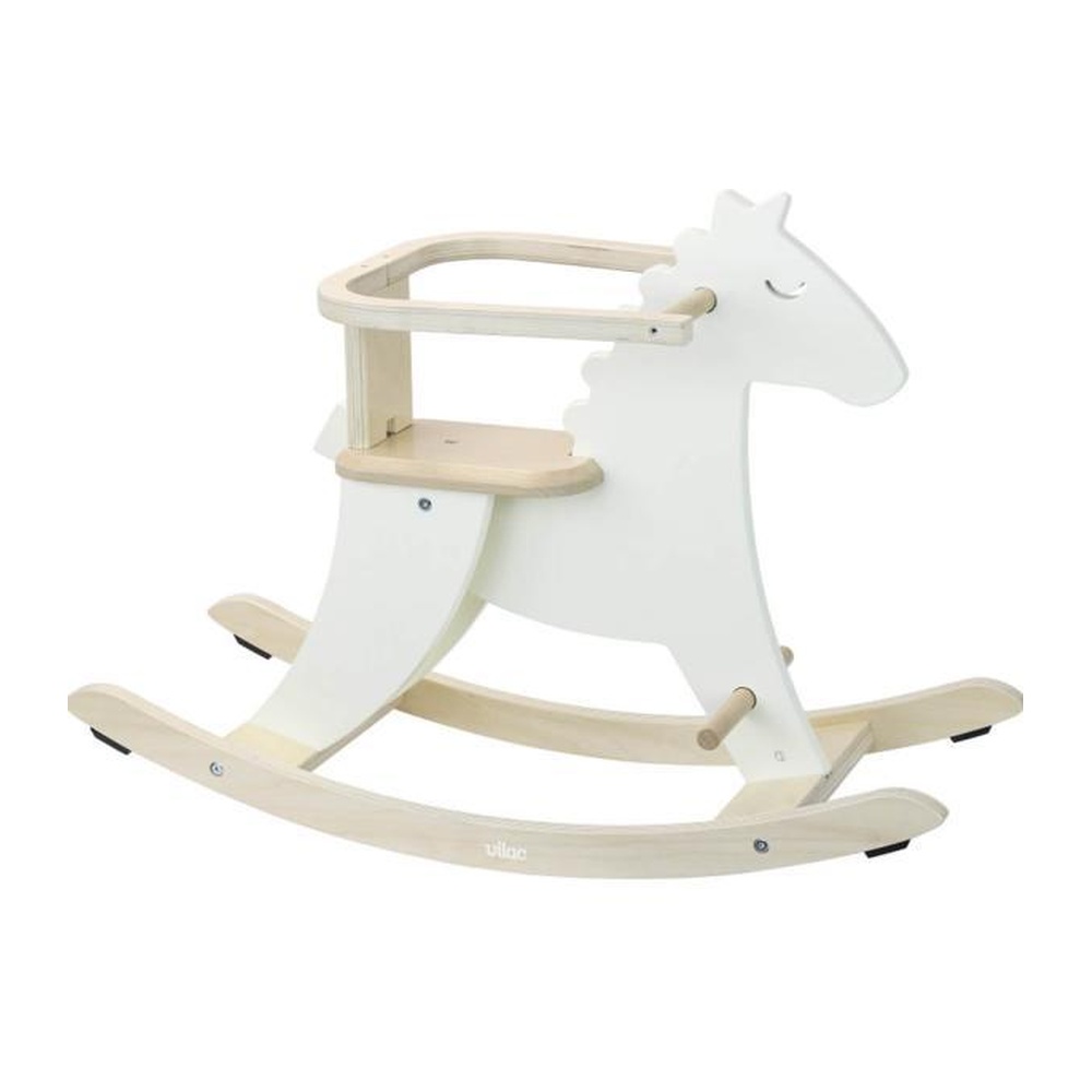 Partez au galop et à l'aventure avec ce magnifique cheval à bascule en bois de la marque Vilac. Votre enfant va pouvoir développer son sens de l'équilibre tout en s'amusant. Parfaitement sûr grâce à ces deux poignées sur les côtés, Il suffit à l'enfant de s'assoir sur l'assise en bois comme sur le dos du cheval, pour qu'il découvre la joie de se balancer. Et pour encore plus de sécurité, le cheval dispose d'un arceau permettant de se maintenir. Ce joli cheval à bascule blanc ivoire plaira aux tout-petits qui auront l'impression d'être sur un vrai étalon...