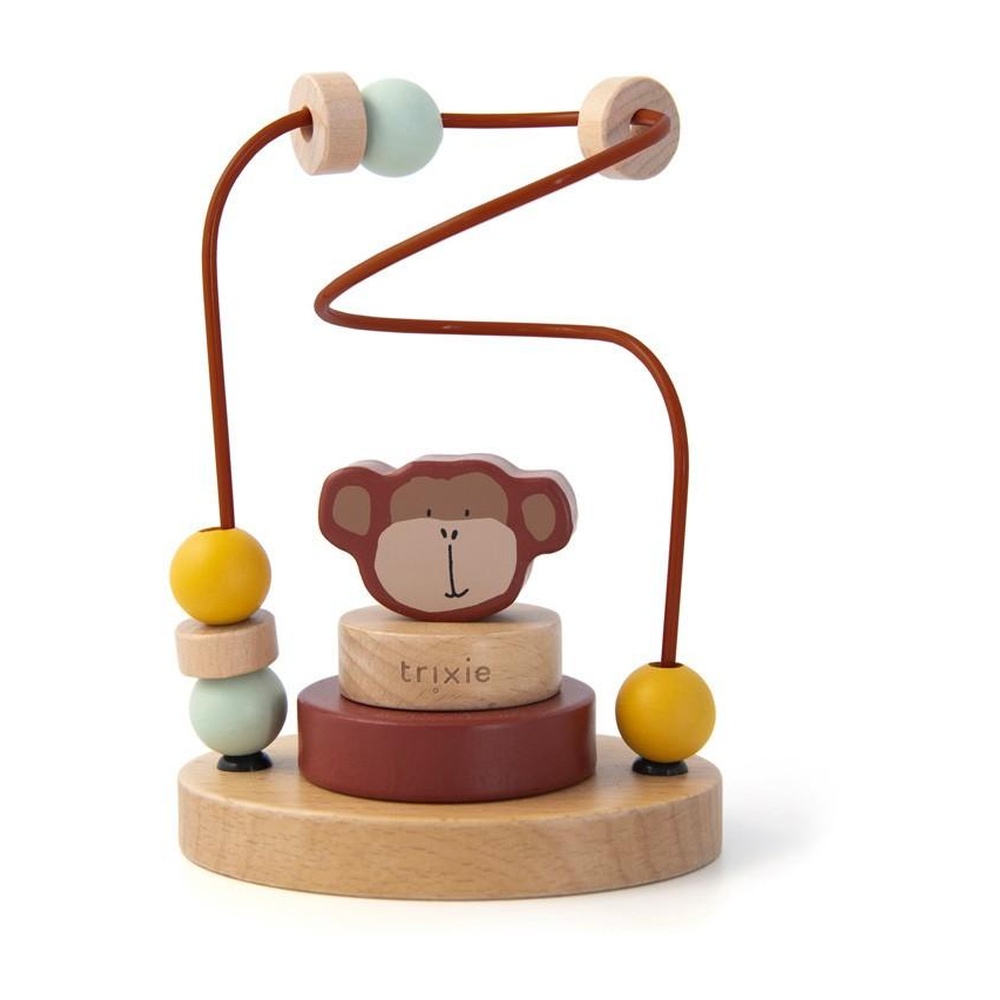 Jeu éducatif en bois combinant un labyrinthe à perles et un puzzle à empiler avec tête d’animal, idéal pour développer la motricité fine et la coordination œil-main dès le plus jeune âge.