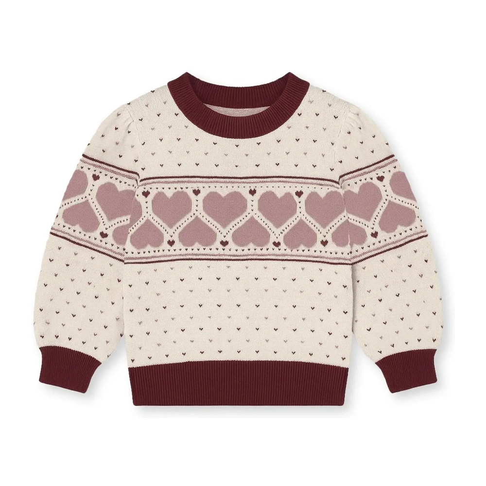 Son motif jacquard en forme de cœur, ses couleurs douces et sa coupe ample en font une pièce aussi confortable que stylée.