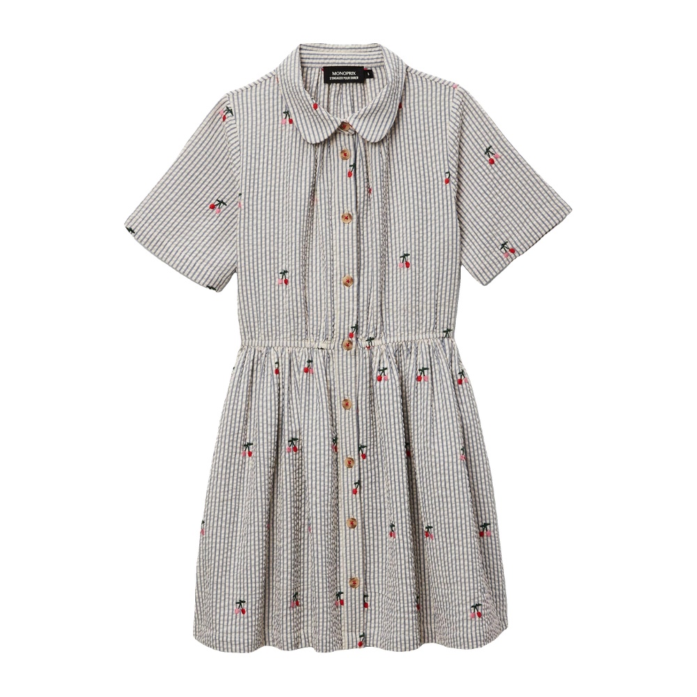 Cette robe en coton 100 % adopte une coupe simple avec col chemise, facile à porter au quotidien.