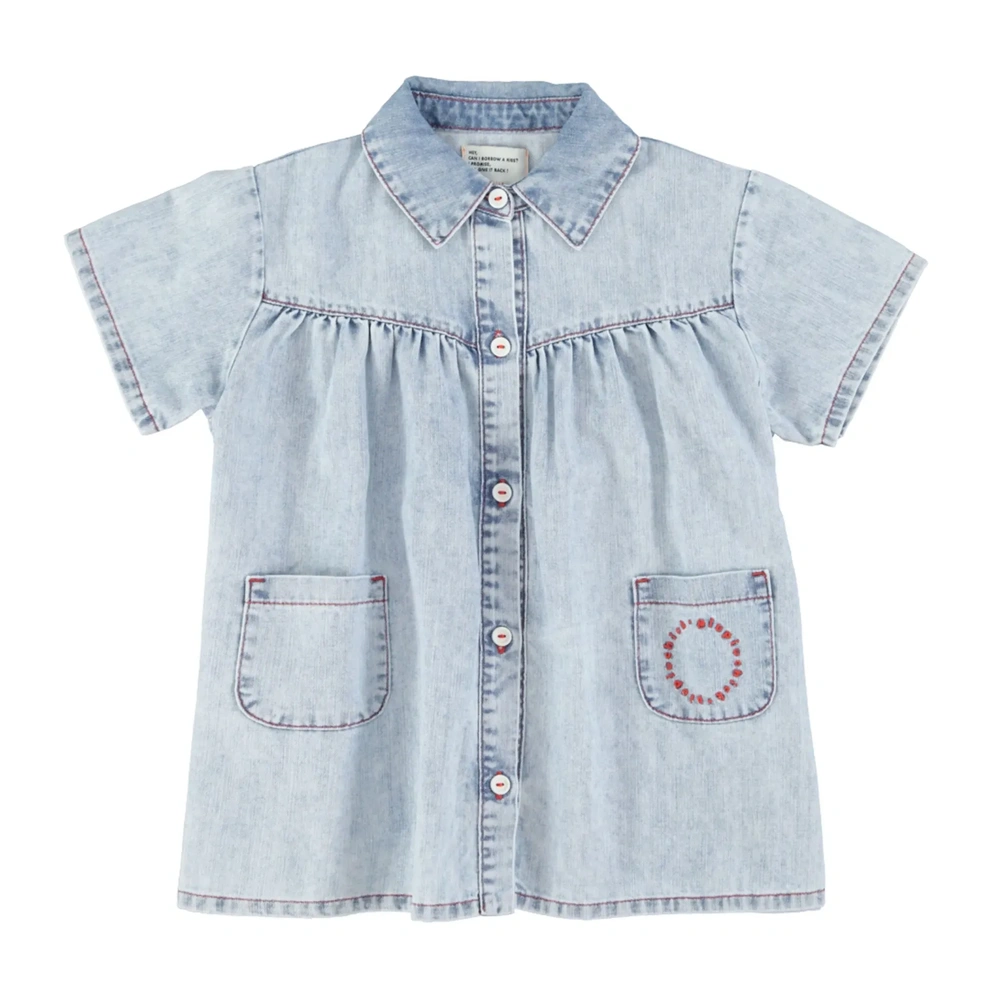 Robe en denim à manches courtes, facile à enfiler et agréable à porter.