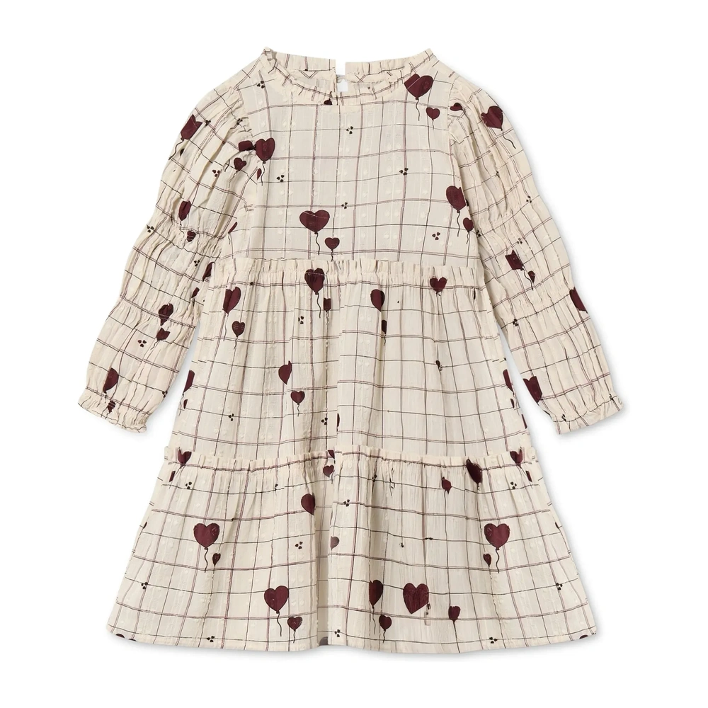 Une robe aérienne et pleine de charme, décorée de carreaux et de petits cœurs pour une allure douce et joyeuse.
