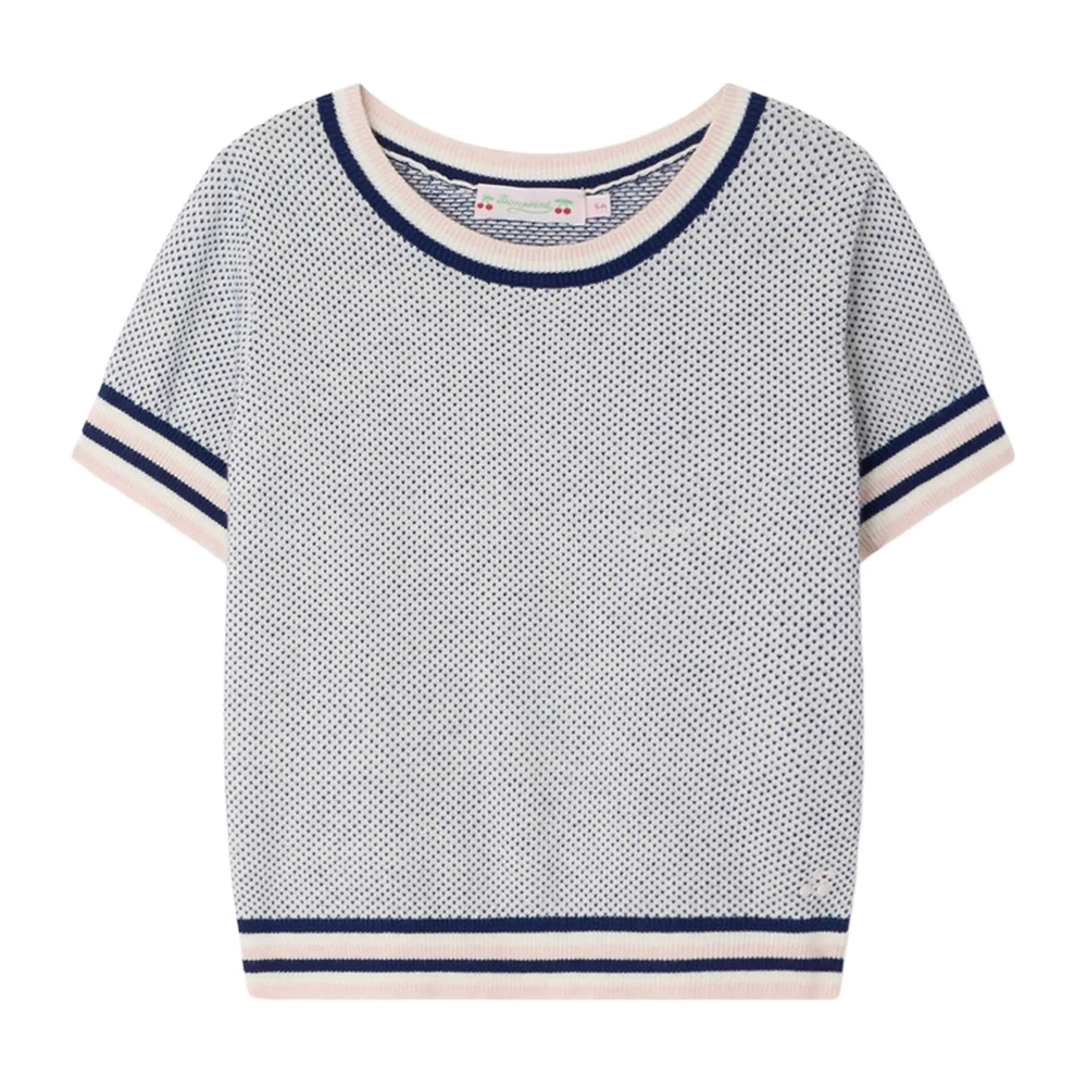 Un pull délicat et raffiné, orné de motifs en maille et de bords-côtes rayés tricolores pour une touche graphique subtile.