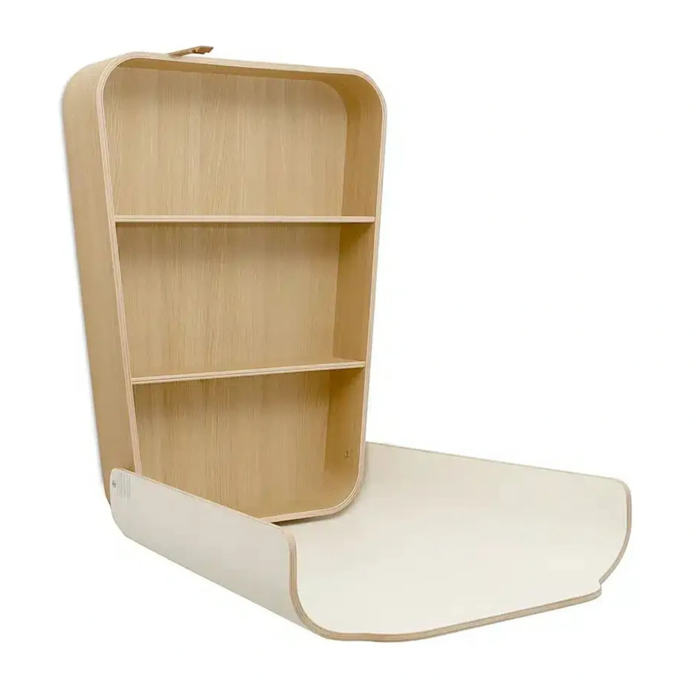 Véritable objet design, la table à langer murale Noga se fixe au mur pour un gain de place maximal. Fermée, elle séduit par sa forme arrondie et épurée ; ouverte, elle offre un espace de change confortable avec deux étagères intégrées.