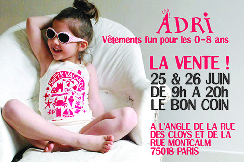 Adri vous invite à sa vente privée qui se déroulera le 25 et 26 juin 2012 de 9 à 20h