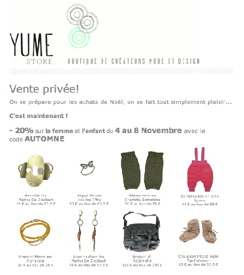 – 20% sur la femme et l’enfant du 4 au 8 Novembre avec le code AUTOMNE