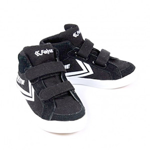 Semelle épaisse en caoutchouc, scratch ton-sur-ton, bout rond, surpiqûres ton-sur-ton, contour chevilles et bord du laçage suede, logo sur les côtés visibles