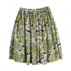 Jupe fleurs et oiseaux multicolore en percale de coton