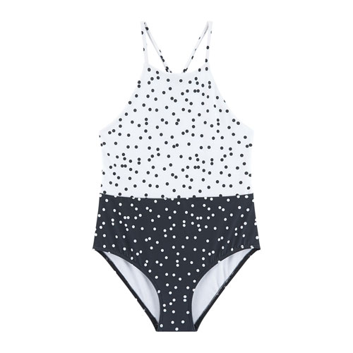 Maillot de bain bretelles croisées dans le dos et imprimé à pois.