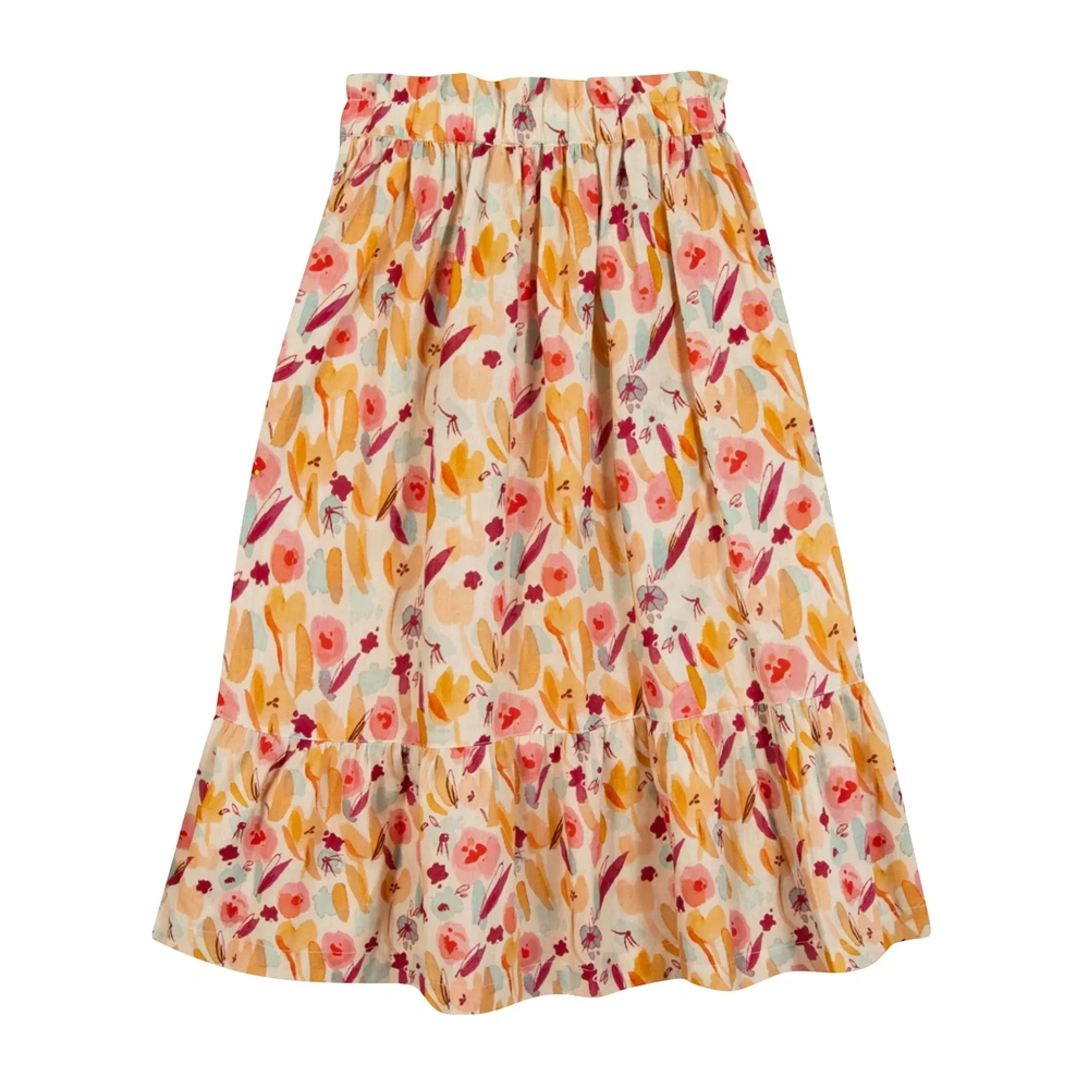 Jupe longue enfant en lin et coton, à la taille élastiquée pour un confort optimal.