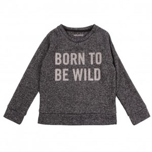 Sweat Chiné Born To Be Wild gris charbon en jersey de coton molletonné