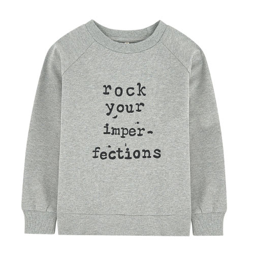 Sweat garçon en molleton de coton biologique gris chiné. Print Fantaisie
