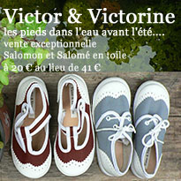 Victor & Victorine vous propose ses Salomon et Salomé en toile à 20€ au lieu de 40€, l’occasion d’offrir à vos bambins de jolis souliers!